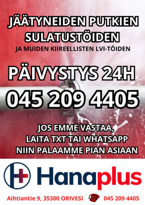 Jäätyikö putket tai onko jokin muu yllättävä tilanne johon tarvitset putkimiehen nopeasti paikalle?